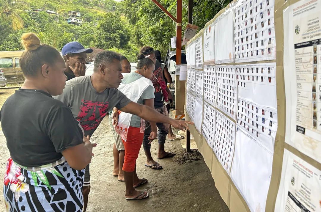 2024年4月17日,所罗门群岛议会选举开始投票,民众查看候选人名单。