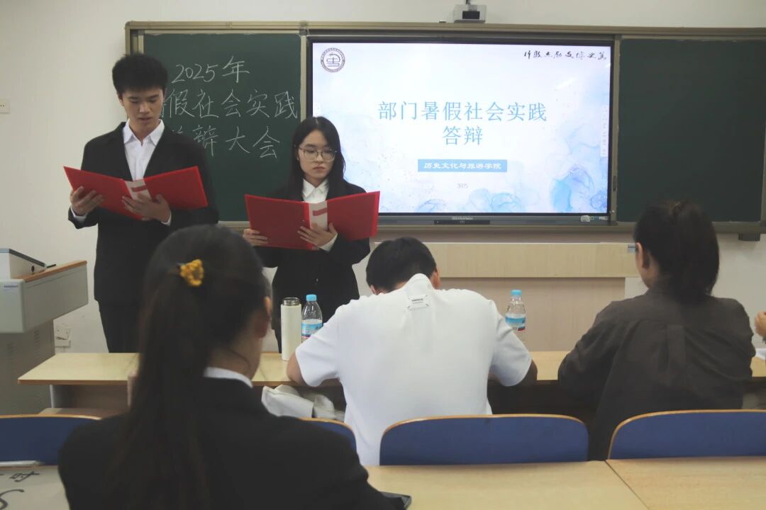 实践淬炼真知,行动书写担当。为检验各团队暑假社会实践成果,引导学生将理论学识与社会实际更好结合,切实增强学生的社会服务意识与实践创新能力,9月25日,9728太阳集团于6#A403、A404教室举办2025年暑假社会实践答辩会。 本次答辩分为学生组织部门答辩与班级实践答辩两个部分,学院团委书记石晓晗和学生评委针对答辩者的现场表现、实践报告完整性及成果落地价值等,进行细致点评与综合评分。 在学生部门答辩中,团队聚焦于环境保护、齐文化传播、儿童健康、方言发展、普通话推广、助老服务等领域,依托PPT和短视频进行成果展示。其中,“古韵新声”调研服务队针对当前方言传播不足、文化传承面临挑战的现实情形,以“传播方言”为核心开展社会实践。服务队通过互动化调研,深入掌握方言传播现状与问题;并借助主题宣讲,向公众阐释方言承载地域文化、维系情感认同的重要意义。“绿芽行动”调研服务队立足全球生态环境治理需求及低碳发展趋势,围绕“低碳生活”主题开展社会实践。服务队通过知识科普、专题讲解等形式,向公众系统传递低碳生活理念。 暑假期间,13支以班级为单位的调研服务队围绕木版年画、齐鲁文化、红色踪迹、家庭叙事、助老数字化等多元主题开展实践探索,成果丰硕。各团队汇报人围绕“团队构成、实践背景、执行过程、核心成果、后续计划”五个维度进行汇报,全面阐述实践工作细节,展示详实的图文资料、生动的实践故事与清晰的成果梳理。其中,“青春暖桑榆,便民润邻里”调研服务队扎根社区开展系列服务,针对老年群众的“数字困境”,他们采取“一对一讲解+实操演示”的方式,帮助老人学会手机挂号、线上购物、视频聊天等技能,解决日常出行与生活中的实际难题,用耐心与细心传递温暖,以实际行动践行青年责任。 评委认真听取各团队汇报,在充分肯定团队在实践活动中展现的创新思维和社会责任感的同时,也从项目选题、活动对象、项目宣传、项目推进、成果转化等方面提出改进建议,鼓励同学们持续深耕,将短暂的实践转化为长期关注与行动。 本次暑假社会实践答辩会的成功举办,不仅为同学们提供了分享心得、相互学习的平台,还有效促进了理论与实践相结合,彰显了新时代青年扎根现实、服务社会的责任与情怀,续写了学院“以实践育新人”的育人篇章。 (供稿:罗佩华 郭俊霞 摄影:罗佩华 郭俊霞 初审:于舒然 复审:张程程 终审:尤姗姗)