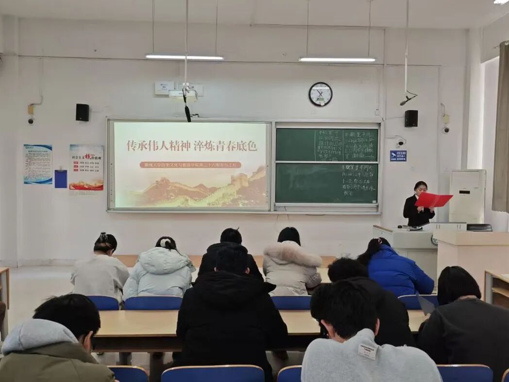 为传承伟人精神,引导学生深刻感悟伟人风范,着力培育担当民族复兴大任的时代新人,12月28日,历史文化与旅游学院于6#A502教室举办“传承伟人精神,淬炼青春底色”第三十六期青马工程培训会。 理论宣讲环节,主讲人紧扣学思想、践初心、担使命三大核心维度,深入阐释毛泽东同志实事求是的思想,细致剖析其服务人民的实践智慧。同时,主讲人着重强调艰苦朴素、终身学习等优良作风的时代引领价值,帮助青年学生全面把握伟人精神的核心要义,筑牢思想根基。 理论宣讲结束后,全体参会成员共同观看纪录片《走近毛泽东》。影片通过珍贵的历史影像,全景再现毛泽东同志从探索真理到领导革命的壮阔奋斗历程,直观映照共产党人的初心使命与责任担当,让学生在沉浸式观影体验中深化对伟人精神的情感认同,清晰认知个人成长与时代使命的内在关联。 互动交流环节中,在场学生结合自身学习与实践经历分享感悟体会。他们纷纷表示,通过此次培训,对伟人精神的理解更为系统深入,未来将以此精神为滋养与指引,坚定理想信念、强化责任担当,努力成长为能够勇担重任的先进青年。 本次培训会的顺利举办,不仅有助于学生深刻领会伟人精神的内涵,激发其自觉锤炼品格、提升修养的内在动力,更有助于引导学生将学习收获转化为实际行动,在日常学习与奋发实践中夯实信仰根基,为民族复兴伟业建设贡献青春力量。 (供稿:李心悦 张旭 初审:郭艺泽 复审:宋佳珊 终审:尤姗姗)