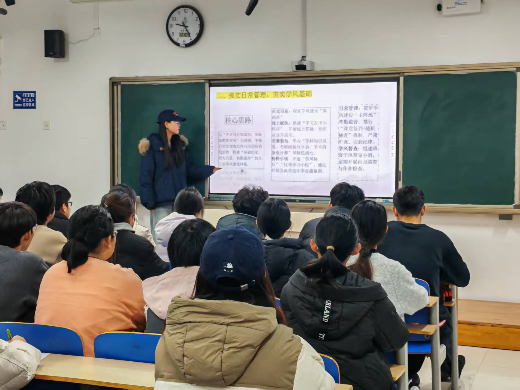 为推动学生主动参与学风建设,提升学风建设工作质量,营造良好的育人氛围,近日,我院于6#A303教室举办“守正创新优学风,多维发力促成长”活动。各年级学生代表及优秀学习小组代表参与本次活动,以多元形式助力学风建设工作走深走实。 活动现场,学生代表围绕学风建设举措进行系统解读,明确推行双重考勤机制,细化迟到、旷课等违纪行为的处理流程。此外,为进一步加强学风建设,学院积极组建班级学风督导小组,由各班学习委员牵头开展常规化点名、自习巡查及作业检查等工作,以标准化管理坚守学风建设主阵地,将勤学、善思、笃行的治学理念融入学生日常学习,着力营造规范有序、务实向上的学习氛围。 在分享交流环节,学风标兵结合学科知识与竞赛实践经验,分享知识点体系化梳理、重难点攻坚等高效学习方法,详细介绍线上答疑专区、优质知识点共享库等学习渠道,鼓励学生进行自主学习。在AI辅助学习工具实操展示中,学生直观体验智能学习规划、专业资源检索等便捷服务,切实感受到技术赋能带来的学习效率提升。 本次活动的顺利举办,不仅有利于激发学生学习热情,更有利于通过标准化管理筑牢学风建设根基,推动学院学风建设提质增效。未来,学院将继续秉持守正创新理念,进一步探索学风建设新路径,为高素质人才培养与校园文化建设注入持久动力。 (供稿:王彤 王青 摄影:历史文化与旅游学院 初审:井鲁豫 复审:魏志鹏 终审:尤姗姗)
