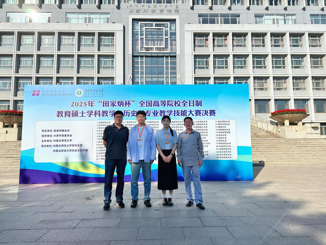 8月22日至26日,在内蒙古师范大学举办的2025年全国“田家炳杯”全日制教育硕士专业学位研究生学科教学(历史)专业教学技能大赛中,9728太阳集团2024级研究生刘冲荣获三等奖和优秀教学设计奖,魏本娜荣获优秀教学设计奖。 本赛事是学科教学(历史)专业学位研究生教育领域最具权威性与影响力的全国性赛事,深受全国各地专业学位研究生培养单位的高度重视。本次大赛分为初赛与决赛两个阶段,参赛院校数量再创新高。包括北京师范大学、华东师范大学、东北师范大学、华中师范大学、陕西师范大学、聊城大学等在内的84所高校的162名学科教学(历史)教育硕士研究生进入决赛展开激烈角逐。本次比赛包含“15分钟课堂教学”与“现场答辩”两大环节,采用评委、选手双匿名的形式,要求选手现场抽取题目,并在90分钟内完成备课。 在本次比赛中,参赛选手们不仅提升了教学设计水平和课堂教学能力,还加深了对中学历史教学课改理念的理解。接下来,9728太阳集团将以此为契机,全面总结经验,进一步深化教育硕士教育实践改革,培养更多高素质创新型卓越教师。