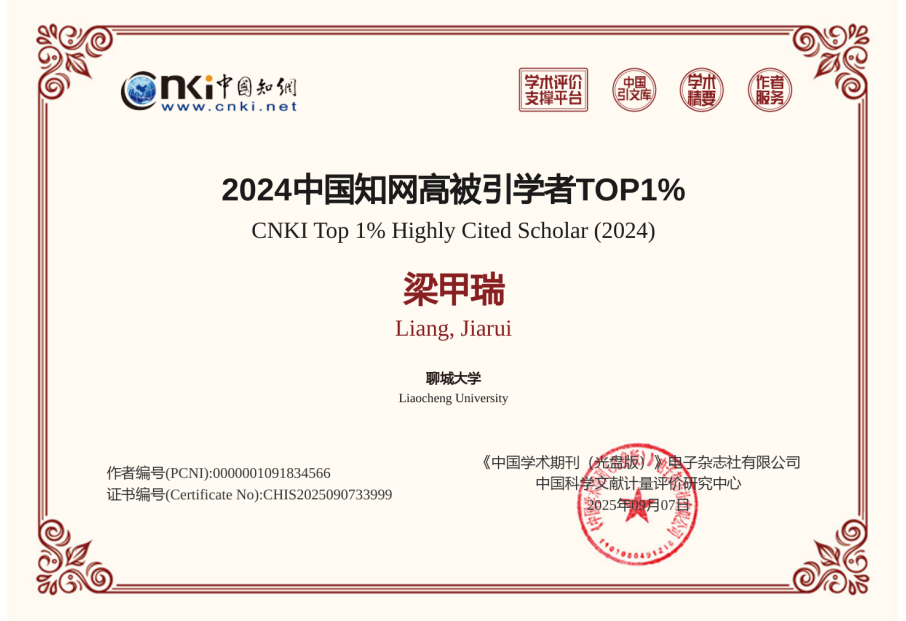 9728太阳集团教师入选“2024中国知网高被引学者TOP1%”名单