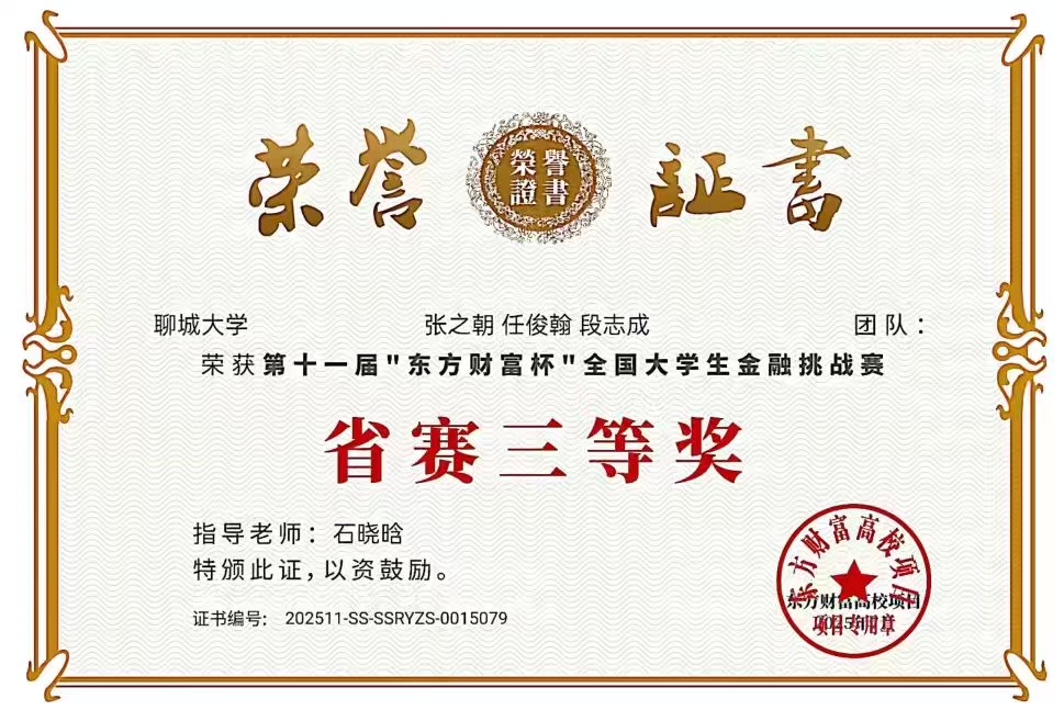 为提升大学生的金融素养与实操应用能力,引导青年学生关注金融行业发展动态,第十一届“东方财富杯”全国大学生金融挑战赛省赛环节顺利开展。在本次赛事中9728太阳集团学生组队参与,凭借扎实的金融知识储备与灵活的实操策略,展现出良好的专业学习成效,最终取得优异成绩。 基于9728太阳集团学生资助政策的扎实推进,9728太阳集团家庭经济困难学生2024级1班任俊翰同学所在团队,在本次大赛中荣获省赛三等奖。在学院、学校和国家的资助政策保障下,任俊翰同学能够安心参与专业竞赛培训与备赛,与团队成员共同钻研金融实操技能、优化竞赛策略,最终在赛事中收获佳绩。 本次大赛有利于激发大学生对金融领域的学习兴趣,帮助学生将理论知识转化为实践应用能力,同时促进了学生之间的协作交流,进一步增强了他们的专业竞争意识与团队合作精神。